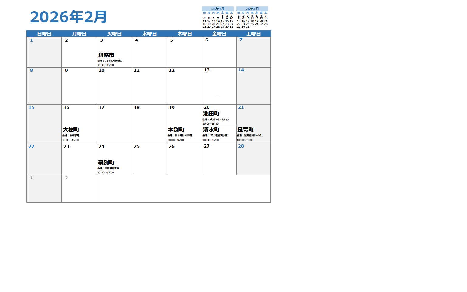 2026.1.30 相談会 【エスタ帯広店】十勝・日高②地方 2月の相談会日程表を更新しました。 ホーム > お知らせ > 相談会 > 【エスタ帯広店】十勝・日高②地方 2月の相談会日程表を更新しました。