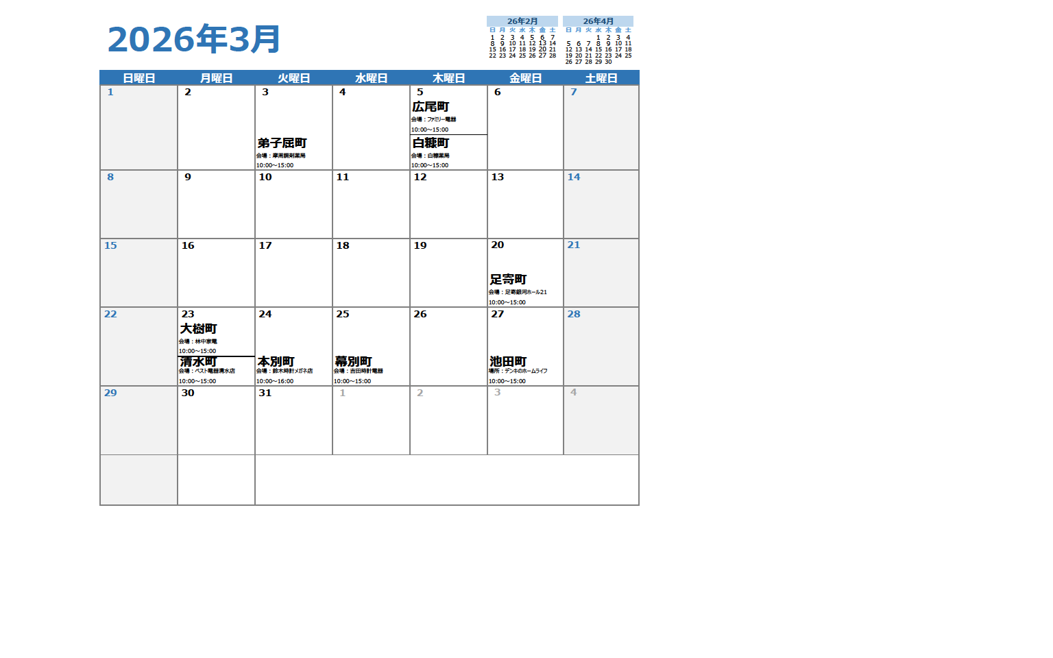2026.2.27 相談会 【エスタ帯広店】十勝・日高②地方 3月の相談会日程表を更新しました。 ホーム > お知らせ > 相談会 > 【エスタ帯広店】十勝・日高②地方 3月の相談会日程表を更新しました。