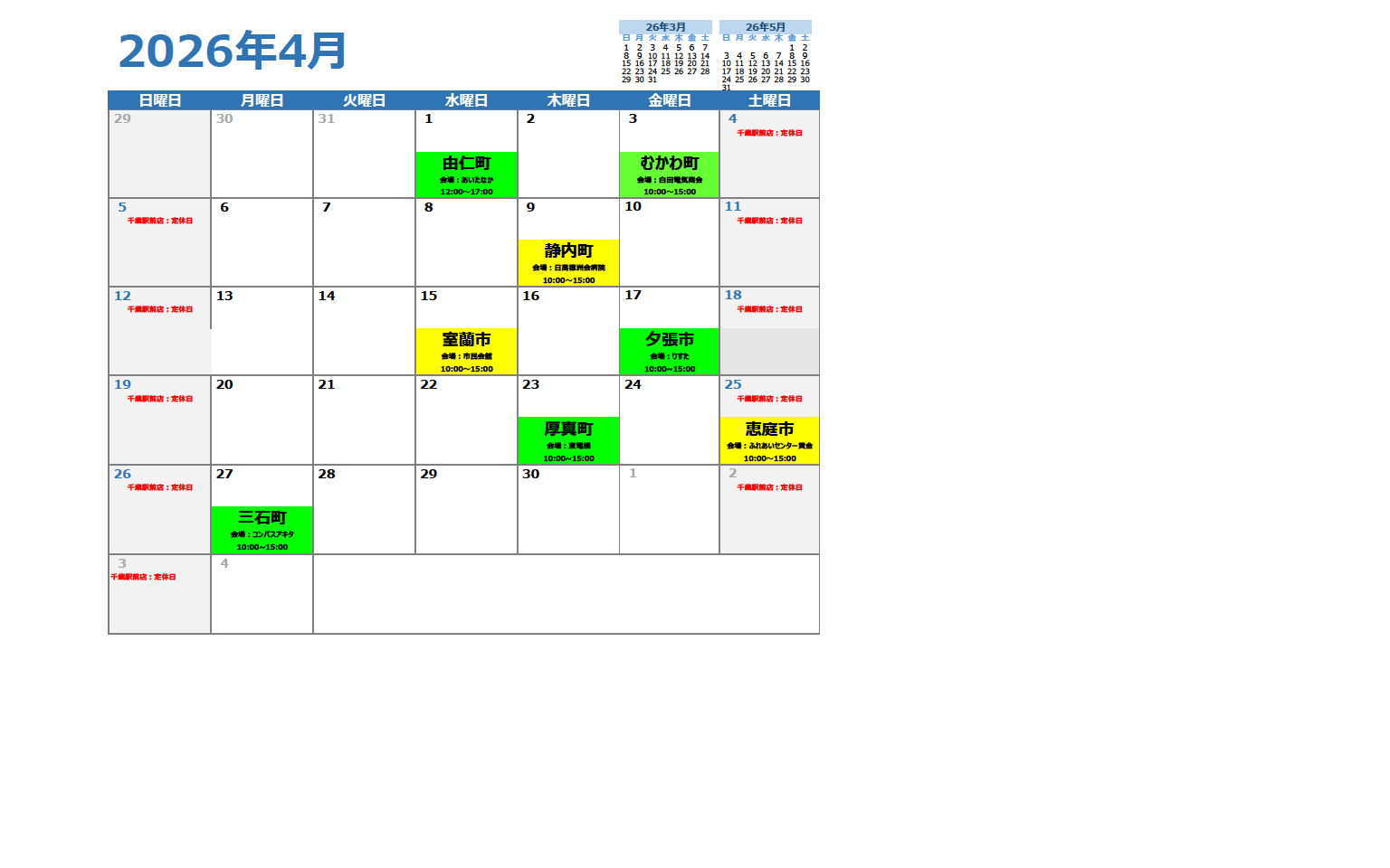 【おたる本店】石狩・後志・空知① 4月の相談会日程表を更新しました。
