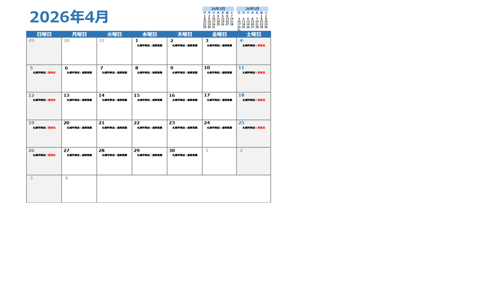 【おたる本店】石狩・後志・空知① 4月の相談会日程表を更新しました。