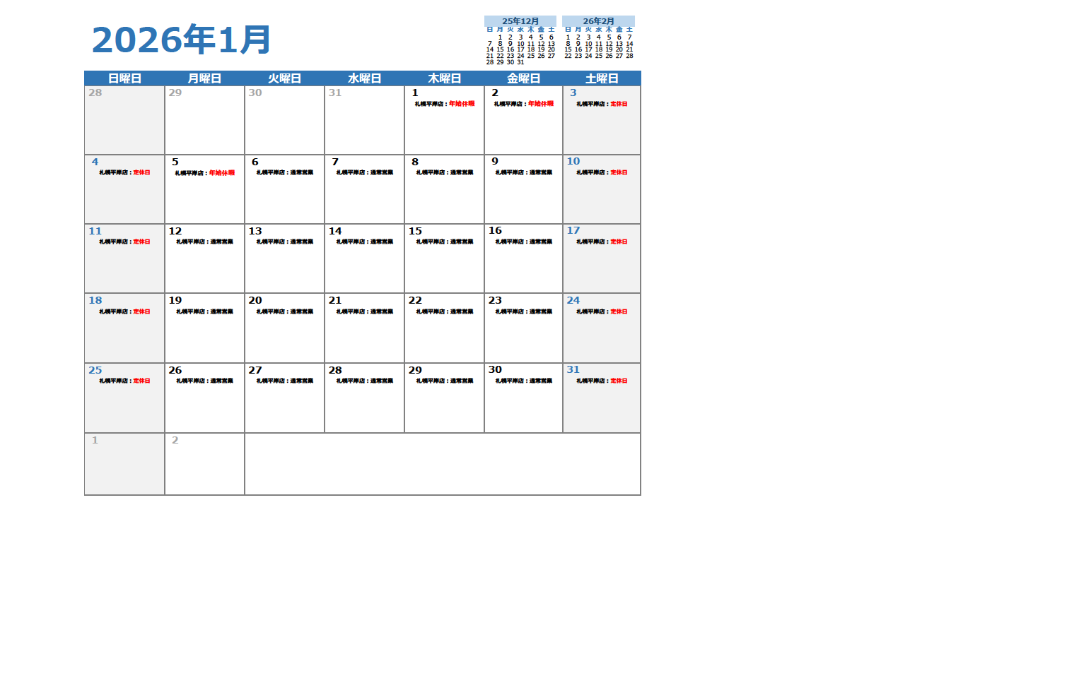【千歳駅前店】胆振・日高①地方 1月の相談会日程表を更新しました。
